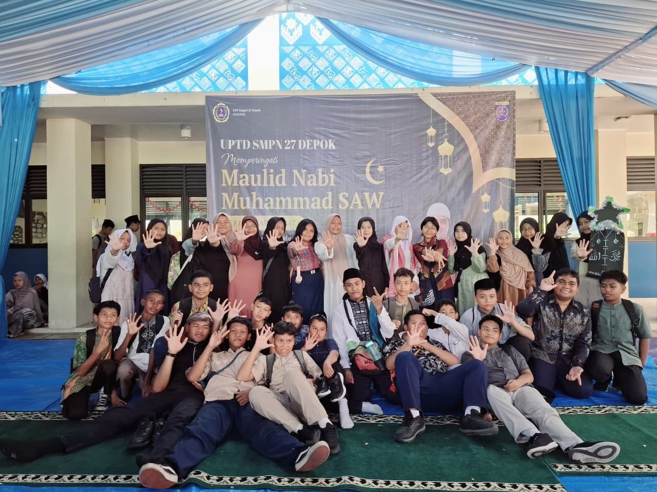 Suasana syahdu dan penuh hikmah menyelimuti SMP Negeri 27 Depok saat seluruh keluarga besar sekolah memperingati Maulid Nabi Muhammad SAW 1447 H pada Kamis, 25 September 2025. Meskipun tanggal peringatan Maulid Nabi secara nasional jatuh pada awal September, sekolah sengaja memilih tanggal ini untuk memastikan seluruh siswa dapat berpartisipasi penuh setelah selesainya rangkaian kegiatan akademik dan non-akademik lainnya. Acara peringatan Maulid Nabi dimulai sejak pagi hari, dipusatkan di lapangan sekolah. Seluruh siswa muslim dari kelas VII hingga IX diwajibkan mengikuti, sementara siswa non-muslim menjalankan kegiatan kerohanian di ruang terpisah didampingi guru agama masing-masing.
